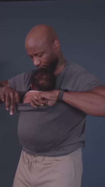 Le premier t-shirt de portage conçu exclusivement pour les papas, qui permet de passer au portage facilement. Pas de nouages compliqués ni de boucles : il suffit de glisser votre bébé dans la poche avant et de profiter d’un maintien confortable et les mains libres.